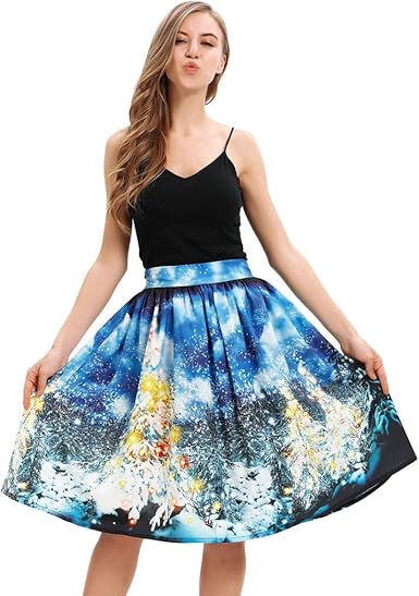 Women Sling Sexy Dresses For Xmas Party Christmas Fashion Women Santa Digital Printed Stretchy Flared A Line Skirt Starry Sky Pattern Amazon Co Uk Clothing